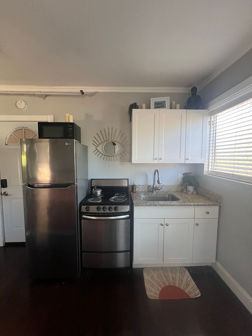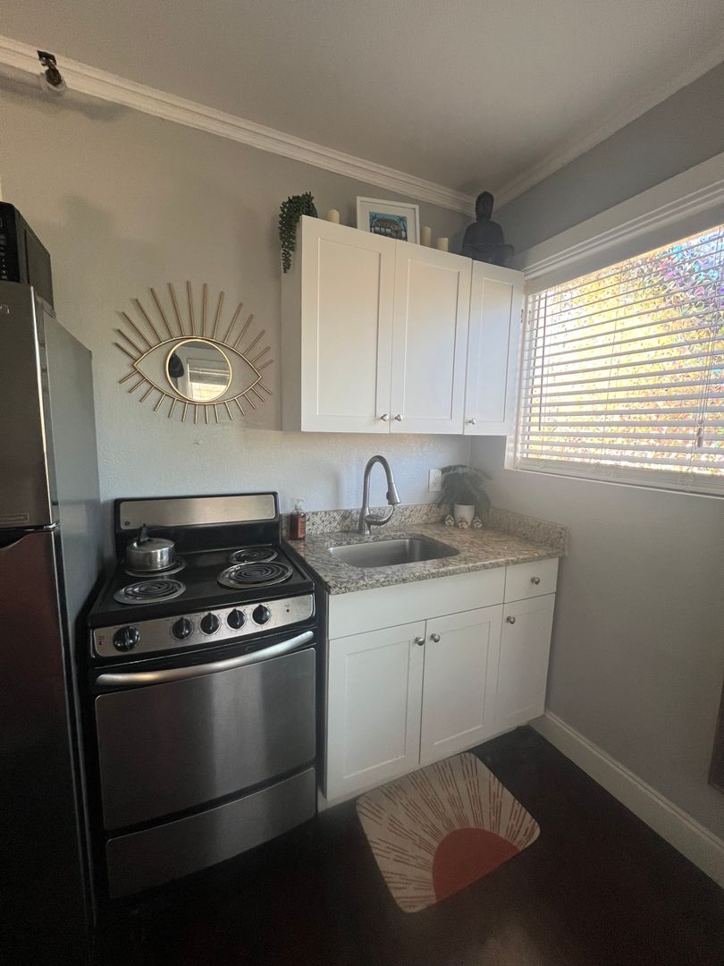 Welcome to The Pixel! This second-floor corner studio offers a spacious walk-in closet, full bathtub, new AC unit, original hardwood floors, granite countertops, and lots of natural light.