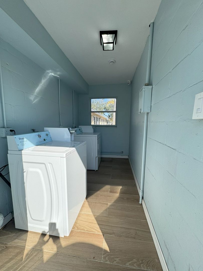This charming, well-maintained community offers durable concrete block construction and thoughtfully updated interiors. Enjoy luxury vinyl plank flooring, granite countertops, shaker-style cabinetry, modern appliances, central heat and air conditioning, and private back patios perfect for relaxing or entertaining.