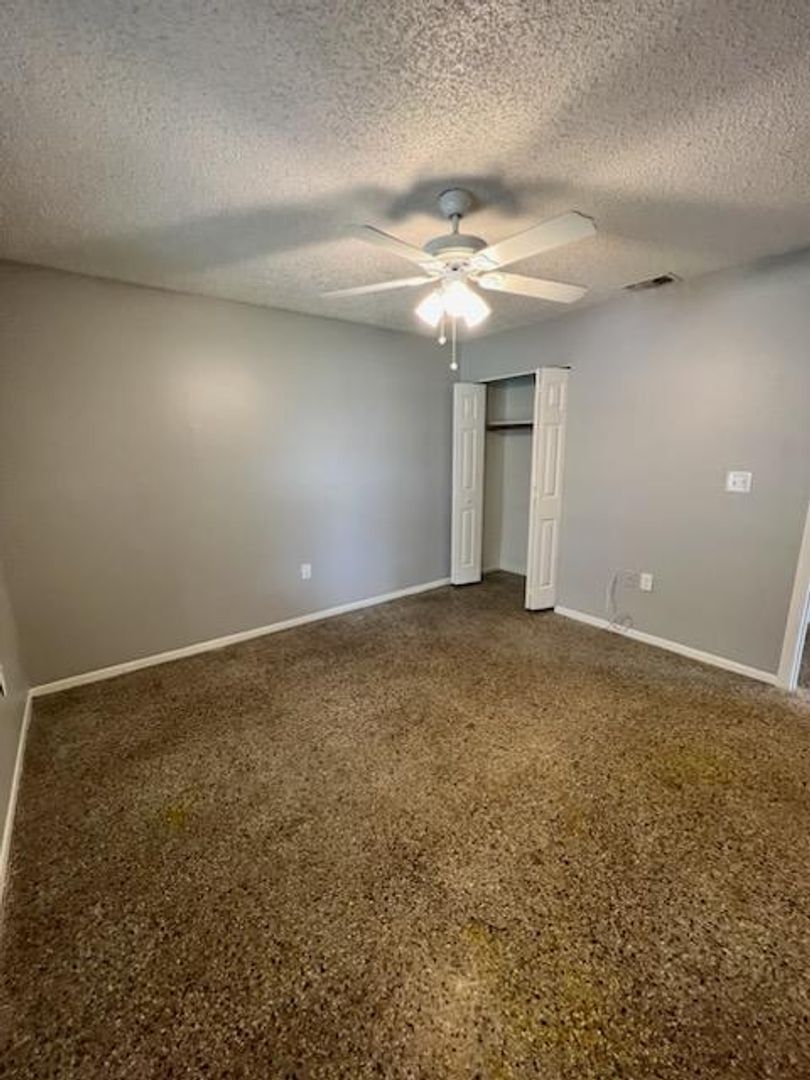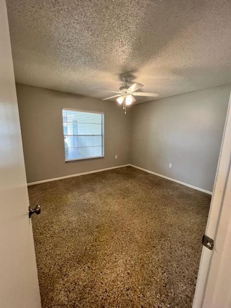 Discover this spacious 2-bedroom, 1-bathroom semi-detached home featuring a large private yard, central heating and air conditioning, and easy-to-maintain tile flooring throughout. Situated on a quiet street, the property offers a private driveway with a covered carport that accommodates up to two vehicles, along with a dedicated utility room equipped with washer and dryer hookups and additional storage space.